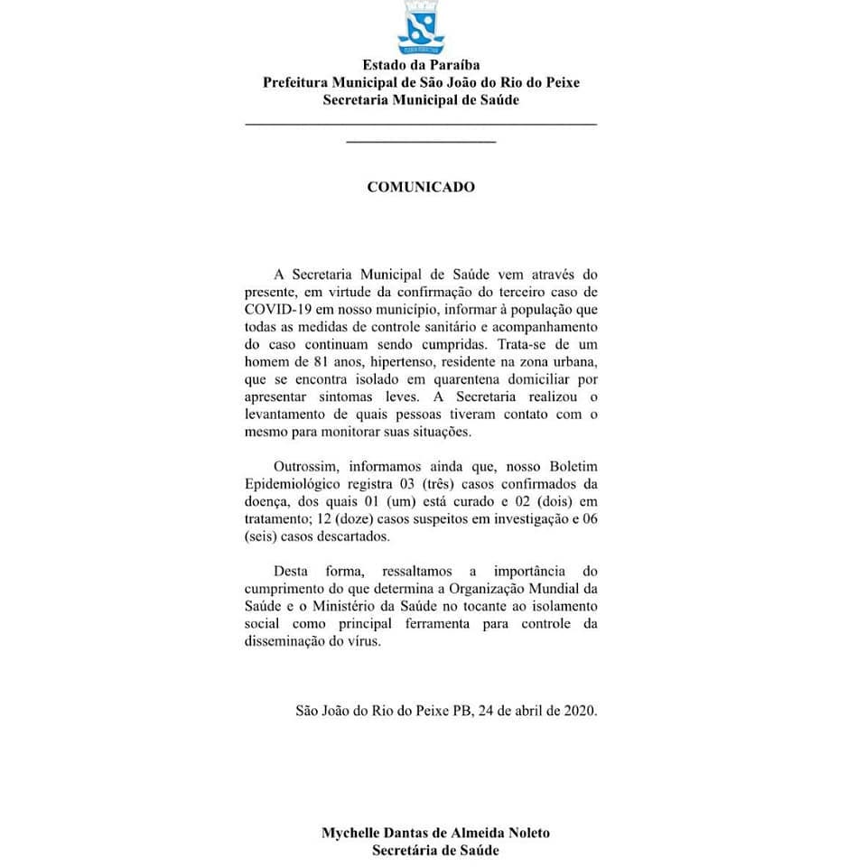 São João do Rio do Peixe-PB, 24 de abril de 2020.