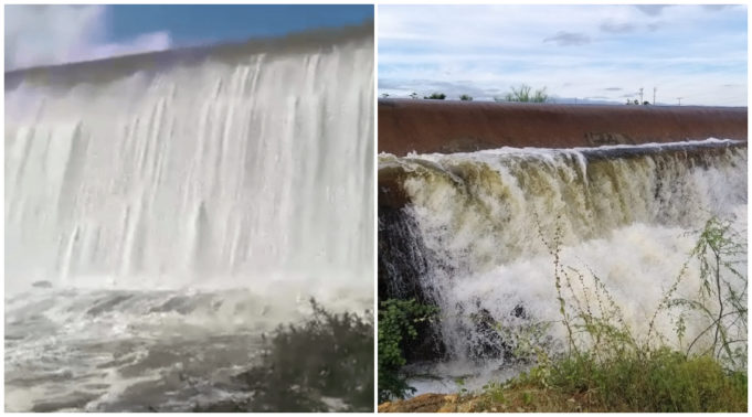 A Barragem da Farinha e o Açude do Jatobá, mananciais que abastecem Patos, estão transbordando forte nesta sexta-feira, 24. Os dois mananciais transbordam desde ontem (quinta, 23) depois das últimas chuvas caídas na região.