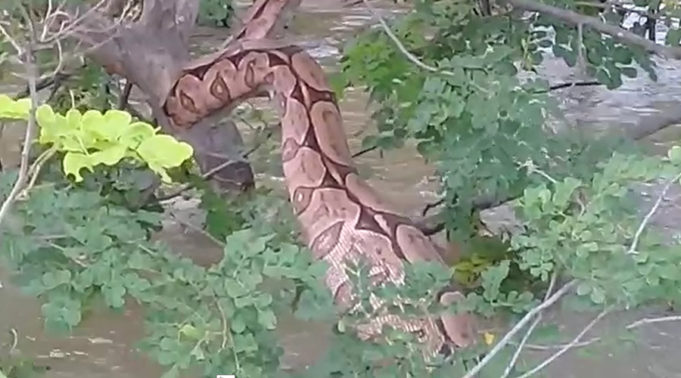 Na manhã de ontem (sexta-feira, 24), um popular flagrou uma jiboia gigante no Riacho da Caiçara. O animal, conforme a imagem mostra, havia acabado de se alimentar.