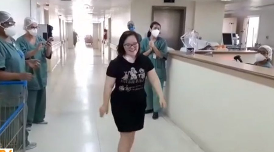 A estudante Marianne Medeiros Tudeia, de 20 anos, portadora da Síndrome de Down, recebeu alta hospitalar após ser diagnosticada com coronavírus. Ela passou 17 dias no Hospital do Servidor Público, em São Paulo, sendo dez deles na UTI. Veja vídeo.
