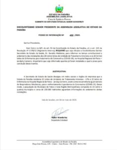Nabor explicou a importância de ser informado quantos leitos já foram instalados e qual o prazo para conclusão das instalações já que tanto o governador João Azevedo como a Secretaria de Saúde divulgou na imprensa e nas redes sociais a instalação desses 40 novos leitos.