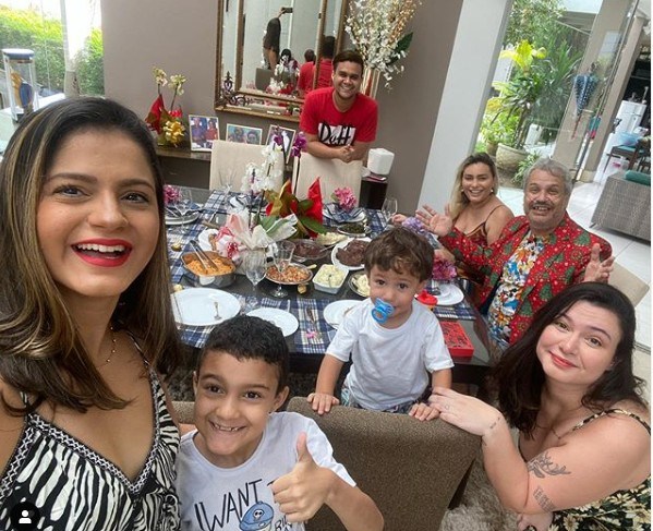 Oi tudo bom pessoal? Passando aqui pra atualizar o feed e vcs do estado de saúde de Sikêra: ele está bem, graças a Deus! Essa foto foi tirada hj no almoço de dia das mães e como vcs podem perceber, Sikêra está com cateter de oxigênio mas pq faz parte da fisioterapia e percebam tbm o modelito icônico que ele escolheu que me faz pensar ? ele tá um pouco perdido no tempo pq é dia das mães e não Natal! ? Então mais do que nunca, estamos todos bem! O maior presente de dia das mães que podia ter era a saúde do meu marido restabelecida! Toda oração é bem vinda! Obrigada a todos pelas mensagens!