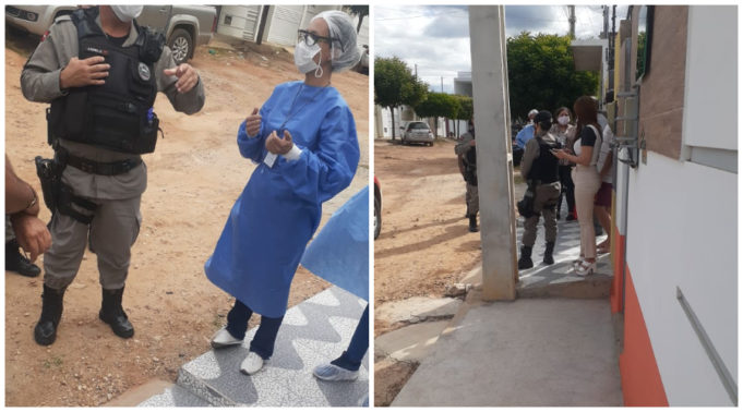 Minutos depois, os policiais receberam a informação que na verdade se tratava de um grupo que chegou a Patos em um micro-ônibus da região de Recife-PE com cerca de vinte pessoas usando máscaras, jalecos, tocas, entre outros equipamentos.