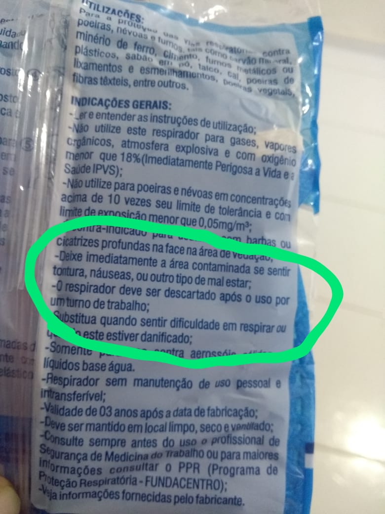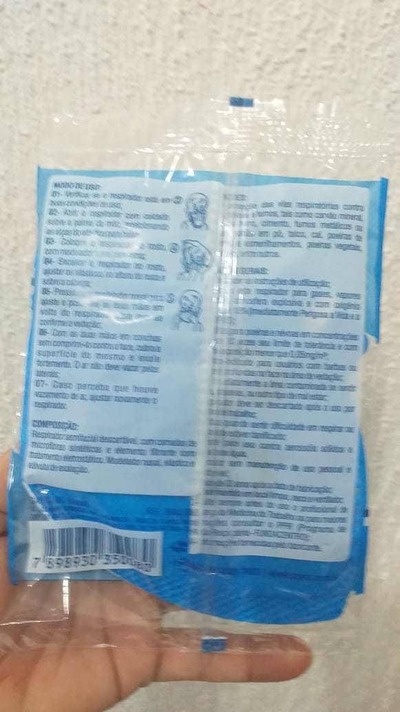 Máscaras entregues é uma réplica da N95 no caso a pff2-s, para trabalhar durante 15 dias, quando na embalagem diz que é para usar uma por turno de trabalho. As luvas usando um par por dia.