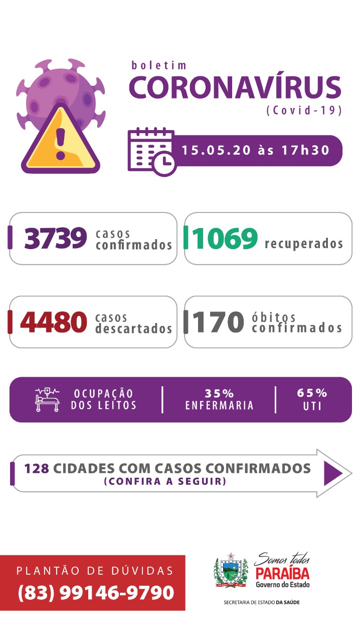 Início Saúde 1.069 pessoas estão curadas da Covid-19 na Paraíba, 40 delas em Patos 1.069 pessoas estão curadas da Covid-19 na Paraíba, 40 delas em Patos 16/05/2020 ... 08:33h FacebookWhatsAppPrintCopy URL Foto: arquivo Folha Patoense 1.069 pessoas já estão recuperadas do coronavírus na Paraíba, 40 delas na cidade de Patos. Veja abaixo os boletins emitidos pelas secretarias Estadual e Municipal de Saúde na noite de ontem (sexta, 15/05). Folha Patoense – folhapatoense@gmail.com LEIA MAISÚltimas notícias Saúde Hospital de Patos realiza 250 atendimentos e 23 cirurgias durante o fim de semana Saúde Paraíba amplia vacinação contra a dengue para profissionais da Atenção Primária e promove “Dia D” de multivacinação Saúde Fevereiro Roxo: Paraíba realiza primeiro Dia D de Cuidados para pets idosos