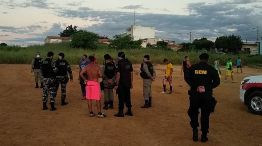 Uma ação conjunta da Guarda Civil Municipal de Patos e Polícia Militar interrompeu na última quarta-feira (13) uma partida de futebol no bairro das Placas. Atividades que geram aglomeração estão proibidas por meio de decreto municipal, que visa a prevenção e contenção da disseminação do COVID-19.