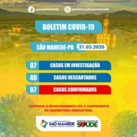 O município de São Mamede registrou mais um caso confirmado de coronavírus nesta quinta-feira (21). Agora são sete casos. Veja o boletim em anexo.