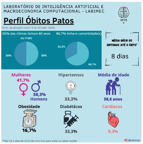 “Outra coisa que esse estudo nos trouxe que é preciso ficar muito alerta é que o tempo em que a pessoa tem constatado a infecção do vírus, que é testado positivo, até o dia que vem a óbito, em Patos, é menor do que a média no estado”, acrescentou Raíssa. A média em todo o Estado é de 11 dias, enquanto a de Patos está em torno de 8 dias.