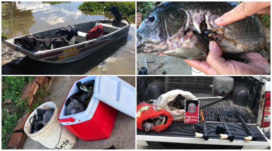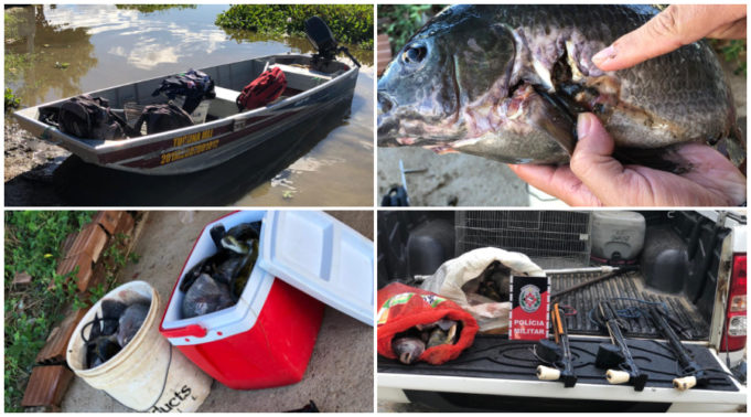 Os policiais militares abordaram uma embarcação com três indivíduos, ao proceder a vistoria, encontraram 01 reboque, 03 arpões e 33 kg de pescado. Diante do ato tendencioso de pesca depredatória com a utilização de petrechos proibidos (arpão), os acusados foram conduzidos à Delegacia de Itaporanga pela prática de crime ambiental, sendo tomadas as providências penais e autuados de forma administrativa com a aplicação de multas.
