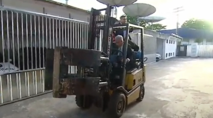 Sikêra Jr. voltou em grande estilo ao Alerta Nacional nesta segunda-feira (26). Recém recuperado de Covid-19, o pernambucano entrou no estúdios da TV A Crítica em um trator.