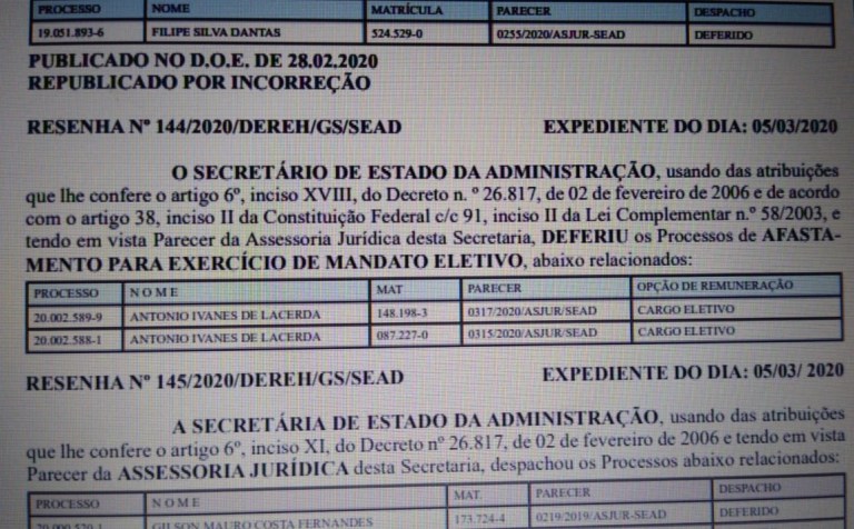 A denúncia do pré-candidato aponta que o prefeito interino de Patos, Ivanes Lacerda, continua acumulando cargos, mesmo já tendo sido notificado sobre isto, por pelo menos um órgão de fiscalização e controle, com dados do sistema Sagres Online, do Tribunal de Contas do Estado (TCE-PB), onde aparece Ivanes recebendo renumerações como gestor municipal e como médico vinculado a Secretária Estadual de Saúde.