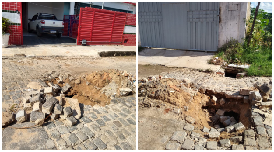 Moradores da Rua Severino Inácio, no bairro Noé Trajano, em Patos, estão reclamando de um buraco de galeria.