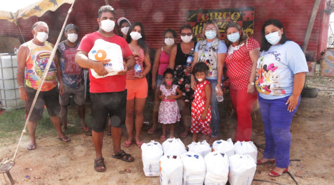 A Prefeitura de Patos, por meio da Secretaria de Saúde, realizou na manhã desta quarta-feira (27), a entrega de cestas básicas, álcool em gel e máscaras de proteção às famílias do circo Miraculous, que se encontram instaladas ao lado da UPA Otávio Pires de Lacerda, no campo da liga.