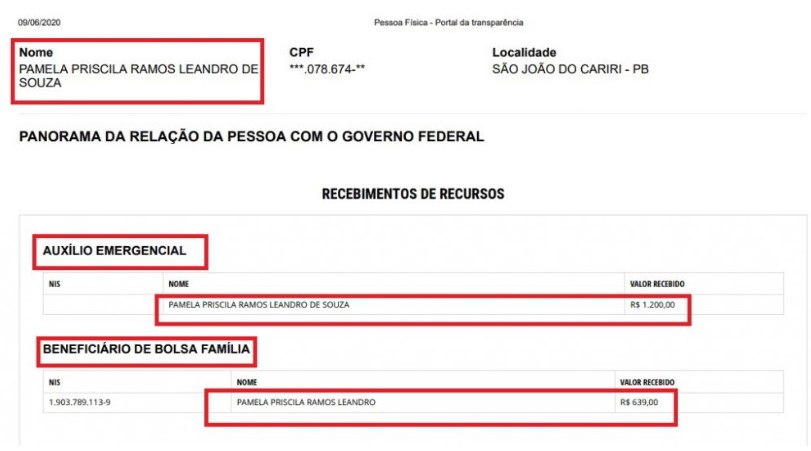 De acordo com o documento Pâmela Priscilla recebeu o benefício de R$ 1.200.