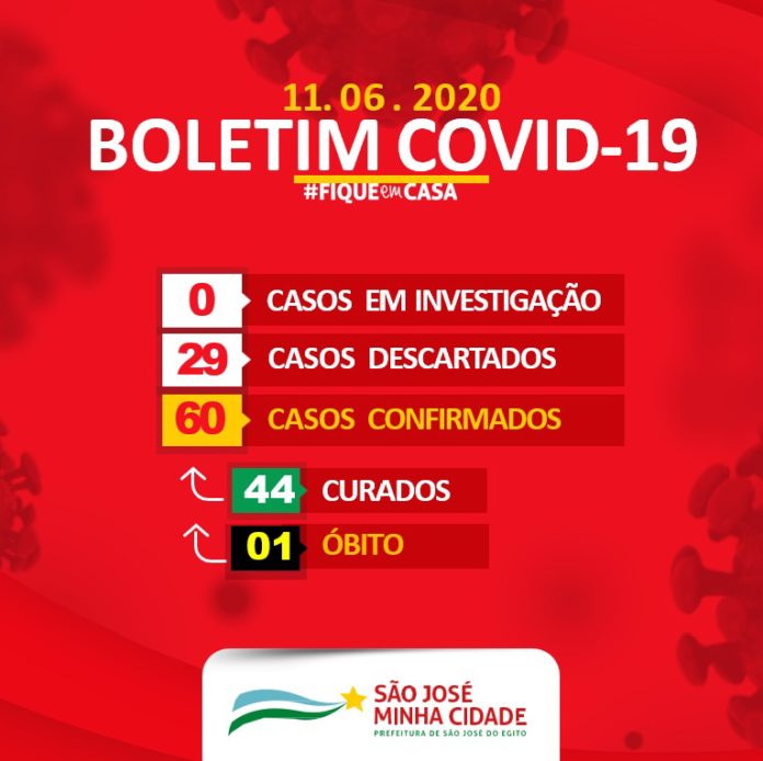 Nesta quinta-feira (11), mais 2 casos de Covid-19 foram confirmados em São José do Egito, no Sertão de Pernambuco, chegando a 60 casos da doença, conforme boletim da Secretaria de Saúde. O órgão também informou a cura de mais 2 pacientes, totalizando 44 pessoas curadas.