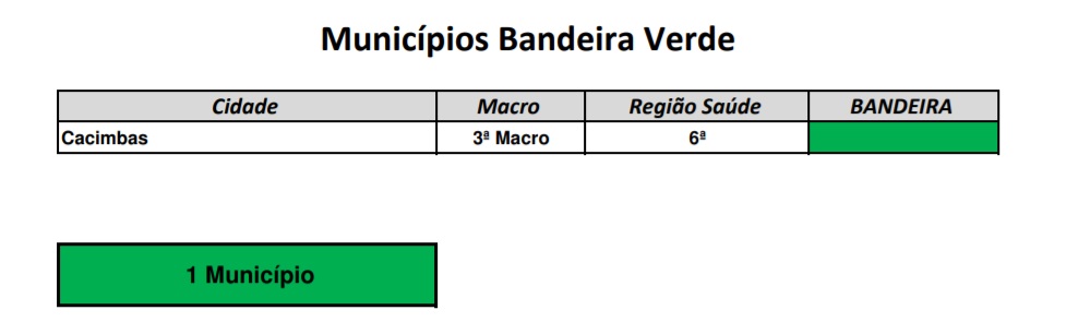 Todos os segmentos da economia e da sociedade podem retomar suas atividades nos municípios que se encontram na bandeira verde. Hoje (13), o município de Cacimbas, na Região Metropolitana de Patos, é o único município nessa condição. (Veja lista completa no final da matéria)