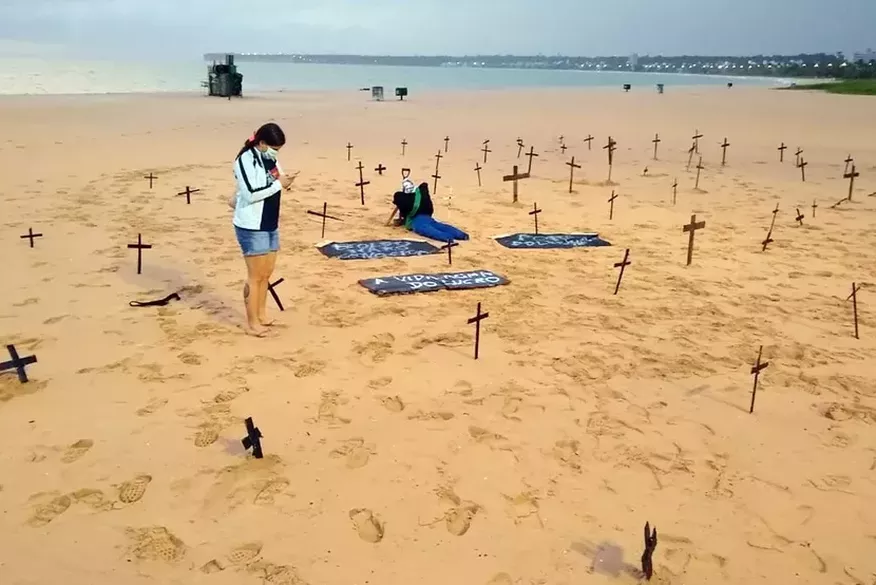 Uma manifestação com cruzes já havia ocorrido em João Pessoa, mas na praia de Tambaú, no último dia 7. Na ocasião também foram instalados cartazes contra o presidente Jair Bolsonaro.
