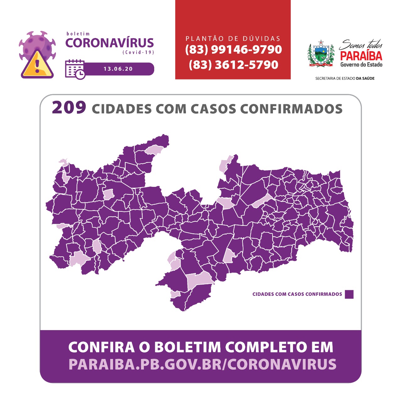Os casos confirmados estão distribuídos por 209 dos 223 municípios paraibanos: