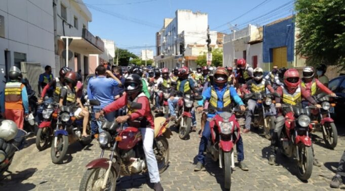 Um grupo de mototaxistas saiu às ruas de Cajazeiras na manhã desta segunda-feira (22), para pedir ao prefeito José Aldemir (PP) bom senso e o pagamento do auxilio emergencial para categoria que sofre com os decretos que fecham em parte o comércio durante a pandemia de Covid-19.
