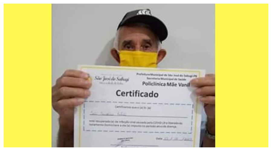 Início Locais Seu João Simplício de São José do Sabugi está curado da Covid-19 Seu João Simplício de São José do Sabugi está curado da Covid-19 25/06/2020 ... 07:43h FacebookWhatsAppPrintCopy URL Seu João Simplício, muito conhecido em São José do Sabugi-PB, é mais um vencedor da Covid-19. Faz parte do grupo de risco, mas está recuperado e cheio de saúde. Teve alta nesta quarta-feira, 24/06. Gaby Medeiros – página São José do Sabugi-PB LEIA MAISÚltimas notícias Locais Últimos dias: Prefeitura de Patos encerra o REFIS na próxima quinta-feira Locais Muita chuva nos municípios da região de Patos de ontem para hoje; veja os índices. Vídeos Locais Estados Unidos dizem que China criou base militar secreta no Sertão da Paraíba
