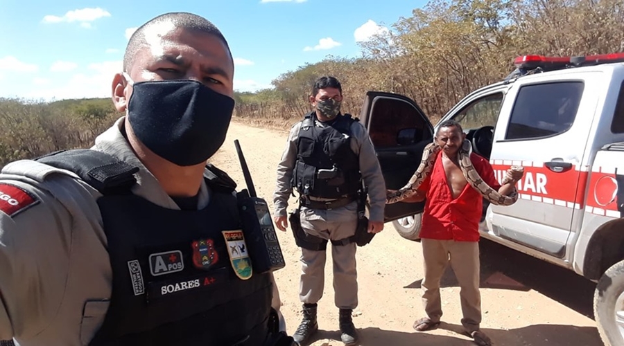 Uma jiboia de aproximadamente três metros foi capturada por moradores da Rua do Arame, no Bairro Nossa Senhora de Fátima, no município de Conceição, Vale do Piancó. A captura foi feita por um morador da localidade que de imediato acionou a PM para auxiliar a levar a cobra para área distante do bairro “onde foi solta na natureza”
