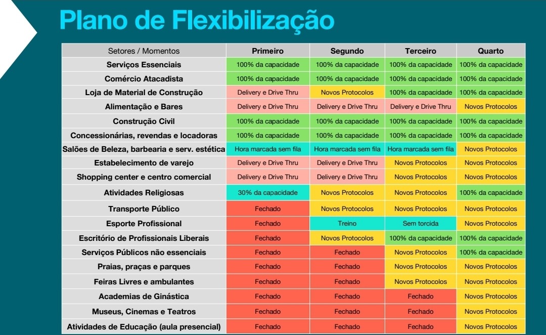 De acordo com o plano de flexibilização divulgado pela Prefeitura, as lojas de material de construção devem voltar com 100% da capacidade, como também os escritórios de profissionais liberais.