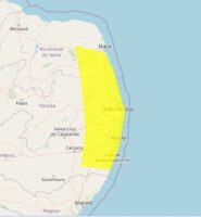 O Instituto Nacional de Meteorologia (Inmet) emitiu um alerta amarelo de perigo potencial de acumulado de chuva para 75 municípios da Paraíba, incluindo João Pessoa e Campina Grande. O aviso vale a partir da 00h deste sábado até 12h.