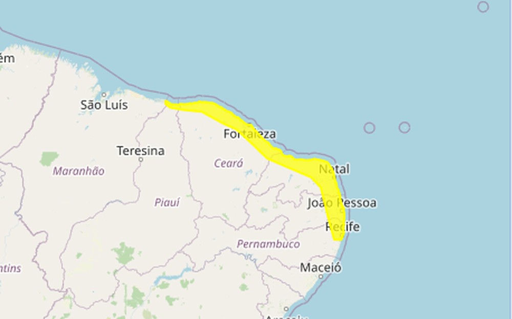 O Inmet diz que pode chover entre 20 e 30 milímetros por hora, ou até 50 milímetros por dia. Nestas cidades, há baixos riscos de alagamentos e deslizamentos.