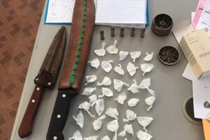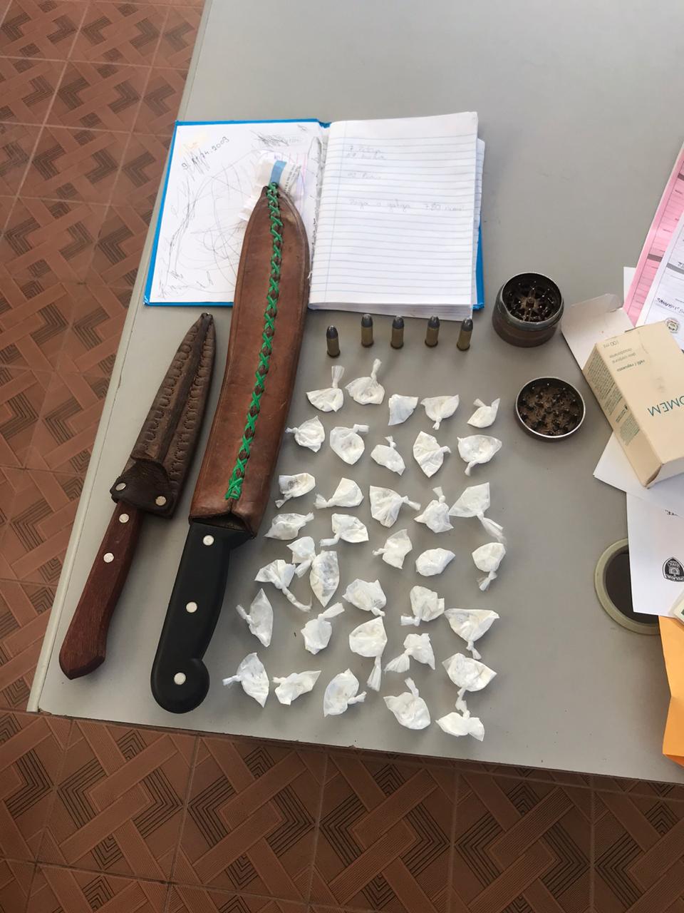 O primeiro caso resultou na prisão do nacional VINÍCIUS PEREIRA DE MORAES, 18 anos, em cujo endereço a polícia apreendeu 36 embrulhos contendo substância similar à cocaína, um triturador, caderno de anotações, cinco cartuchos de munição calibre .38, além de duas armas brancas.