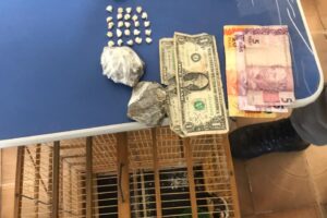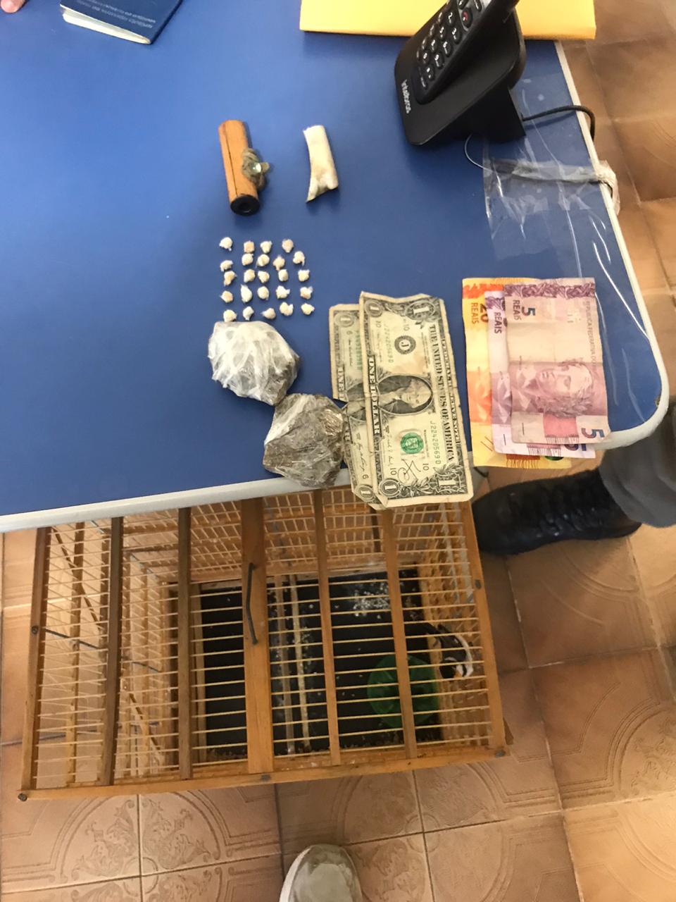 O segundo caso resultou na prisão do nacional BRUNO CRISPIM MORAIS, 28 anos, em cujo endereço a polícia apreendeu 24 embrulhos contendo substância análoga ao crack, 02(dois) embrulhos contendo substância semelhante à maconha, cédulas diversas em real e dólar americano, um smartphone Samsung cor preta, além de uma ave silvestre.