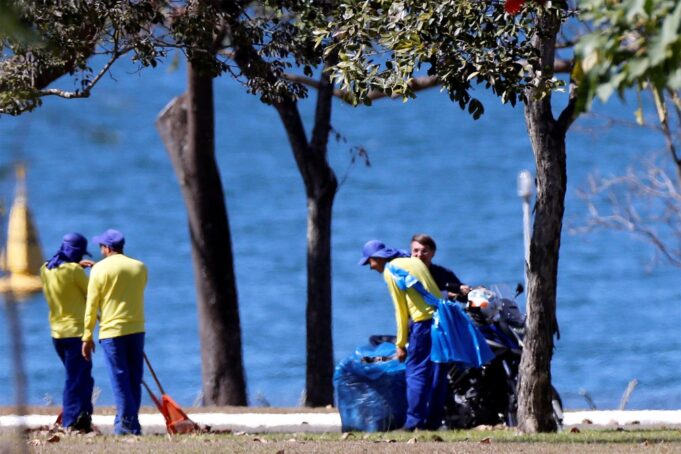 As imagens do passeio foram feitas pelo repórter-fotográfico Adriano Machado, da agência Reuters. Não é possível, com base nas fotos, saber a distância de Bolsonaro para os garis.