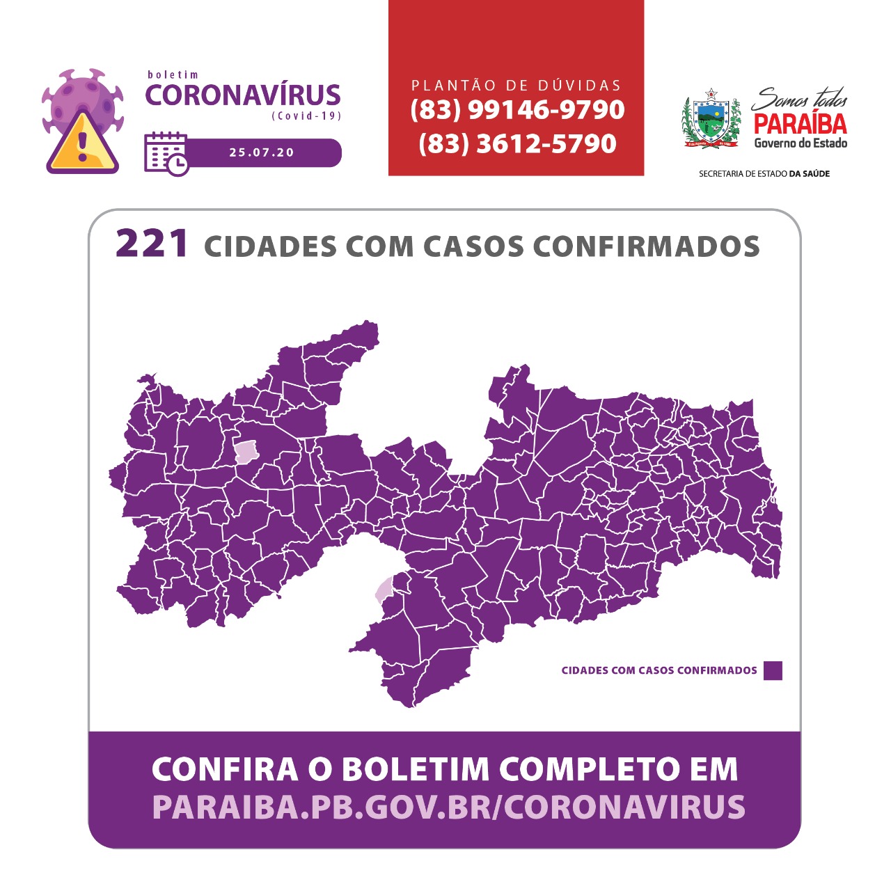 Os casos confirmados estão distribuídos por 221 dos 223 municípios paraibanos:
