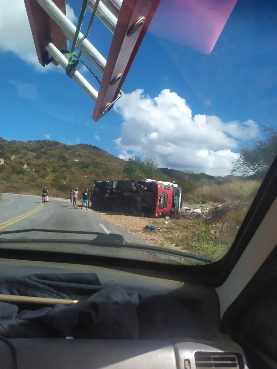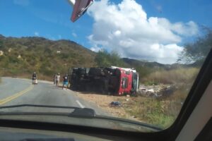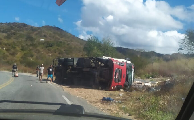 O caminhão trafegava no sentido Teixeira-São José do Bonfim quando, já no fim da serra, faltou freio, o motorista perdeu o controle e capotou. De acordo com as informações o motorista teve apenas ferimentos leves. O Samu está no local prestando atendimento.