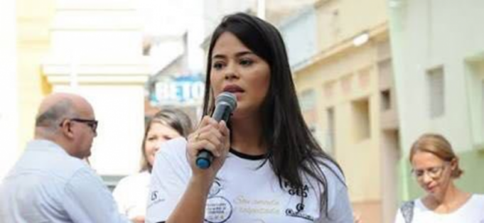 Por ser esposa de Dinaldo e não ocupar nenhum cargo eletivo, não poderá ser candidata nestas eleições.