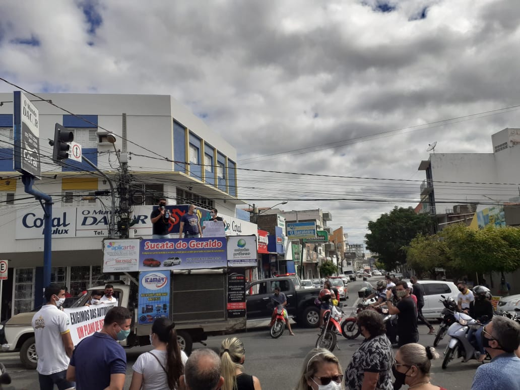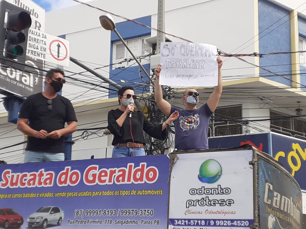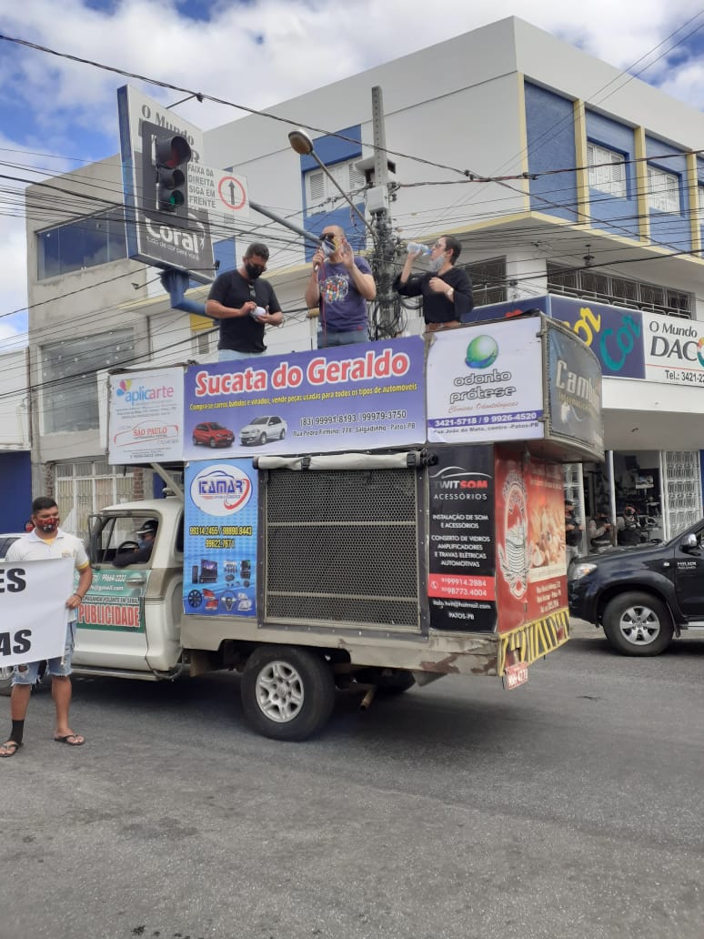 Na manhã desta sexta-feira, 31/07, donos de bares, restaurantes, pizzarias, espetinhos e demais estabelecimentos comerciais realizaram protesto no centro de Patos.