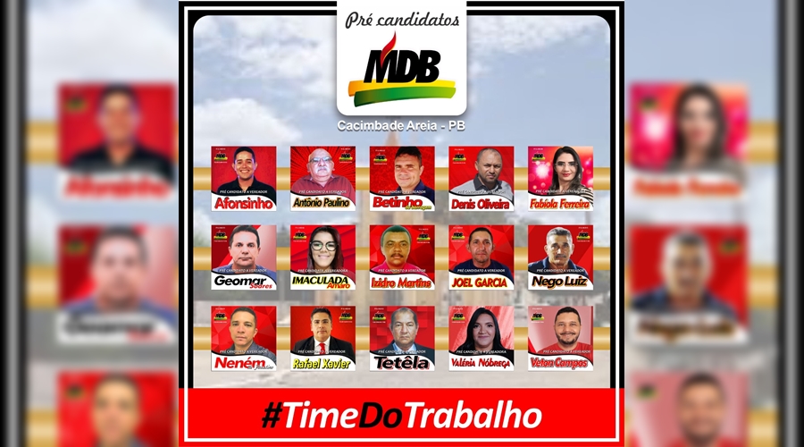 Na reta final da pré-campanha para as eleições municipais 2020, o Movimento Democrático Brasileiro (MDB), de Cacimba de Areia-PB, apresentou neste fim de semana, os nomes dos seus pré-candidatos aos cargos de vereador e vereadora no município.
