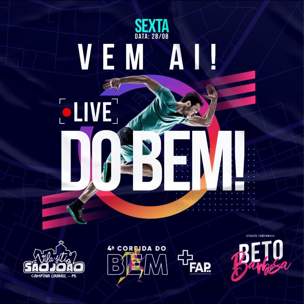 A Pandemia causada pelo coronavírus impossibilitou a realização da 4ª edição da Corrida do Bem em Campina Grande para ajudar o Hospital da FAP na aquisição do software que atualiza o aparelho de radioterapia e o acelerador, trazendo benefícios e maior atendimento aos pacientes de câncer. Pensando nisso, o cantor resolver reunir os amigos em prol do hospital.