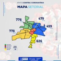 De acordo com os números desta quarta, a Zona Oeste de Patos permanece como a região com o maior índice de casos confirmados para o Covid-19, com 778 casos, seguida da Zona Norte, com 776 casos. Na separação por localidades, o Jatobá (bairro da Zona Sul), permanece à frente com o registro de 409 casos de coronavírus.
