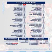 Confira relatório completo com os casos por localidade, faixa etária, gênero e ocupação de leitos hospitalares na imagem seguinte.