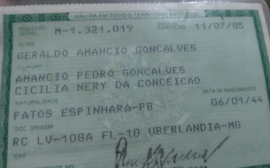 A história de separação prematura com a família teria acontecido aos 12 anos de idade, quando o senhor Geraldo Amâncio, ainda criança, foi embora da Capital do Sertão, no ano de 1957, e não teve mais contato com nenhum familiar.