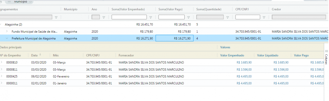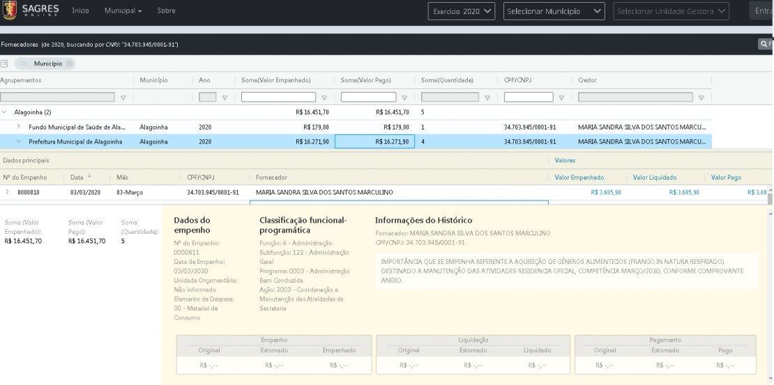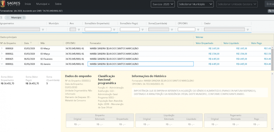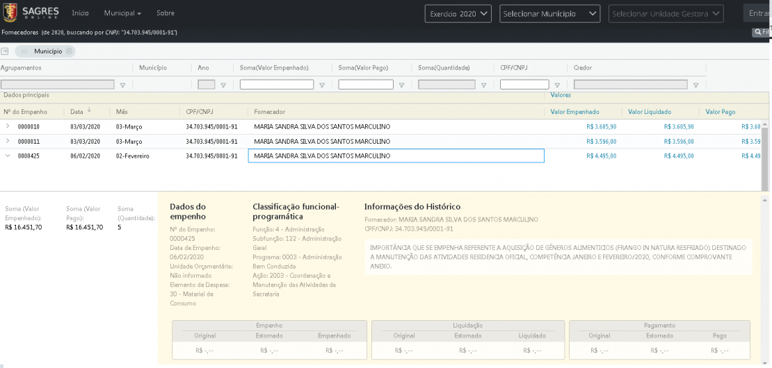 Confira os empenhos pagos, extraídos do Sagres: