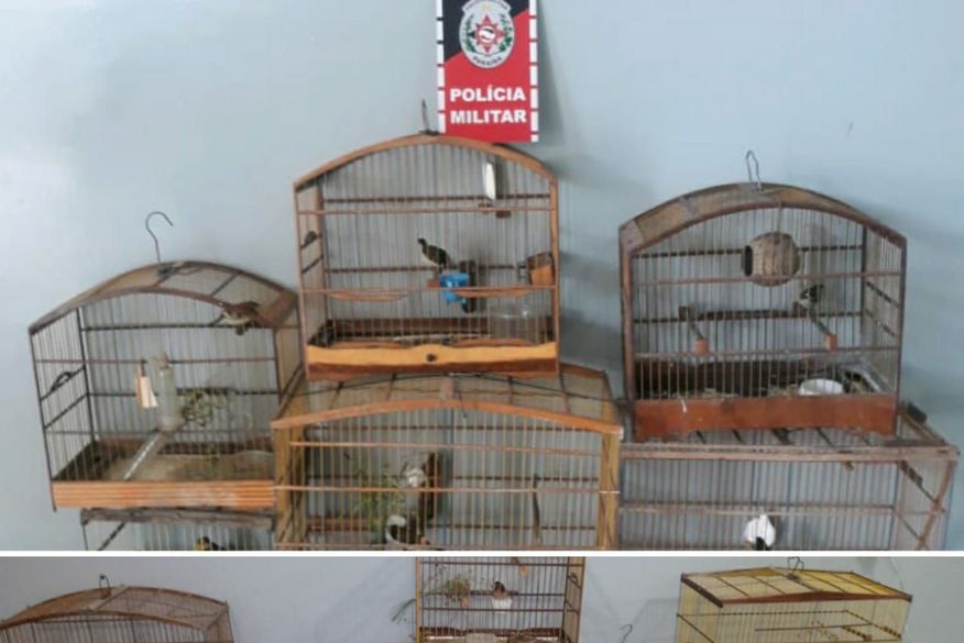 Em Marcos Moura, os policiais identificaram um suspeito com seis aves silvestres em gaiolas. O suspeito não possuía autorização para criação das aves por órgão ambiental competente.