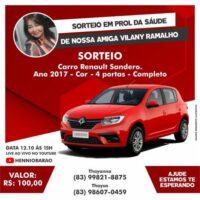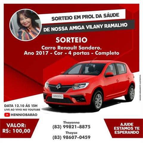 A senhora Vilany Ramalho, de 54 anos, residente no bairro Novo Horizonte, em Patos, vem enfrentando um sério problema de saúde e, para custear o tratamento, está sorteando o seu próprio veículo.