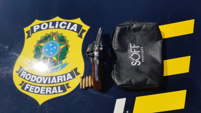 O revólver encontrado em uma bolsa, no interior do veículo, estava com as cinco munições intactas, prontas para uso.
