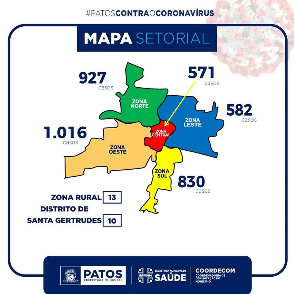 De acordo com os números desta quarta, a Zona Oeste de Patos, segue como a região com o maior índice de infectados da Covid-19, com 1.016 casos. Na separação por localidades, o Jatobá (bairro da Zona Sul), permanece à frente com o registro de 557 casos de coronavírus.