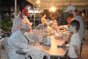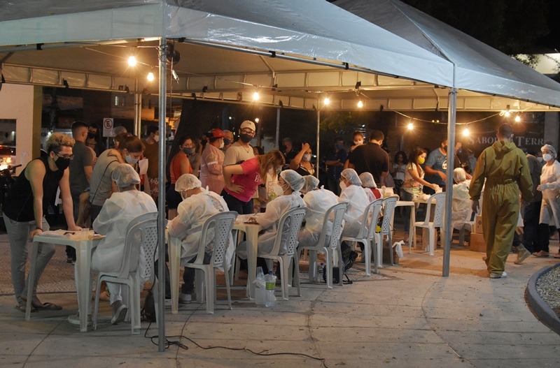 No total, foram realizados mais de 700 testes para a Covid-19, sendo mais de 400 na praça Getúlio Vargas e o restante nos três abrigos de idosos da cidade, nas ações que ocorreram no período da manhã.