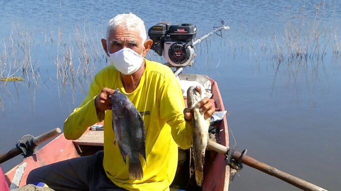 “No ano passado, tava muito longe. Ficava bem lá pra dentro, na faixa de uns 200 metros ou mais, daqui pra chegar onde ela (a água) tava. Graças a Deus esse ano, com o inverno, a gente tá vendo ela bem pertinho! Esse ano tem sido muito bom pra nós. Já pegamos bem muito peixe nela. Tem dado muito peixe, devido o inverno ter sido muito bom. Tudo isso já ajudou a gente”, conta o pescador, Luiz Lopes.