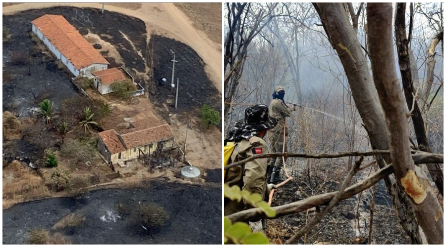 Completa nesta segunda-feira (21), nove dias que o Corpo de Bombeiros Militar da Paraíba trabalha no combate ao fogo nos municípios de Santa Terezinha, São José do Bonfim, Mãe d’Água e parte de Patos. Apesar de ainda não ter a dimensão em quilômetros da área afetada, Santa Terezinha é o mais prejudicado, segundo informou, em entrevista ao ClickPB, o comandante do 4º Batalhão de Bombeiro Militar, major Danilo Galvão. Um sobrevoo foi feito pelos bombeiros, mostrando algumas áreas afetadas.