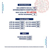 No levantamento feito dos leitos hospitalares, dos 52 disponíveis, 12 estão ocupados. Dos registros de infectados feitos por localidade, o bairro do Jatobá segue na frente com 613 casos. Por gênero, o sexo feminino segue na frente com 2.553 casos, e na faixa etária até 40 anos foram registrados 2.450 casos.