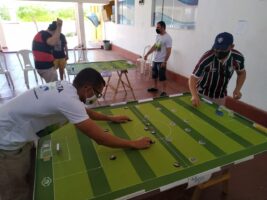 Seguindo todas as recomendações de prevenção ao Covid-19, aconteceu no último domingo dia 27 de setembro a I etapa da Copa Patos de futebol de botão. Essa competição foi idealizada pelos botonistas amadores Matheus Menezes e Eduardo Medeiros, que desde janeiro estavam com esse projeto, mas em virtude de tudo que vem ocorrendo no mundo em função da pandemia provocada pelo novo coronavírus, a ideia estava adormecida.